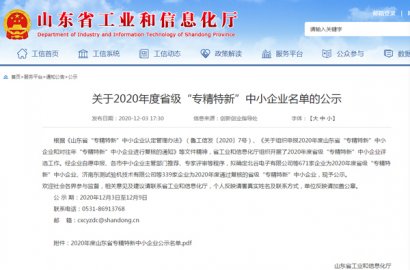 根據(jù)《山東省“專精特新”中小企業(yè)認(rèn)定管理辦法》(魯工信發(fā)〔2020〕7號)、《關(guān)于組織申報2020年度山東省“專精特新”中小企業(yè)和對往年“專精特新”中小企業(yè)進(jìn)行復(fù)核的通知》等文件精神,省工業(yè)和信息化廳組織開展了2020年度省級“專精特新”中小企業(yè)評選工作。經(jīng)主管部門推薦、專家評審等程序,確定我公司為2020年度省級“專精特新”中小企業(yè)。