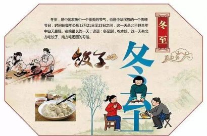二十四節(jié)氣中的第二十二個節(jié)氣。進(jìn)入冬至節(jié)氣這一天,太陽直射南回歸線,北半球白天最短,黑夜最長,數(shù)九寒天從此開始。